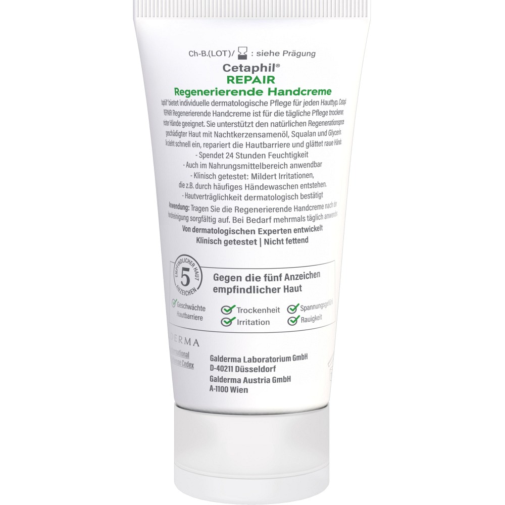 Cetaphil REPAIR Regenerierende Handcreme ist eine intensiv feuchtigkeitsspendende Handpflege für trockene Hände. Mit wertvollen Inhaltsstoffen, wie Nachtkerzensamenöl und hautverwandten Lipiden regeneriert sie die Haut nach belastender Tätigkeit und spendet ihr intensiv Feuchtigkeit.