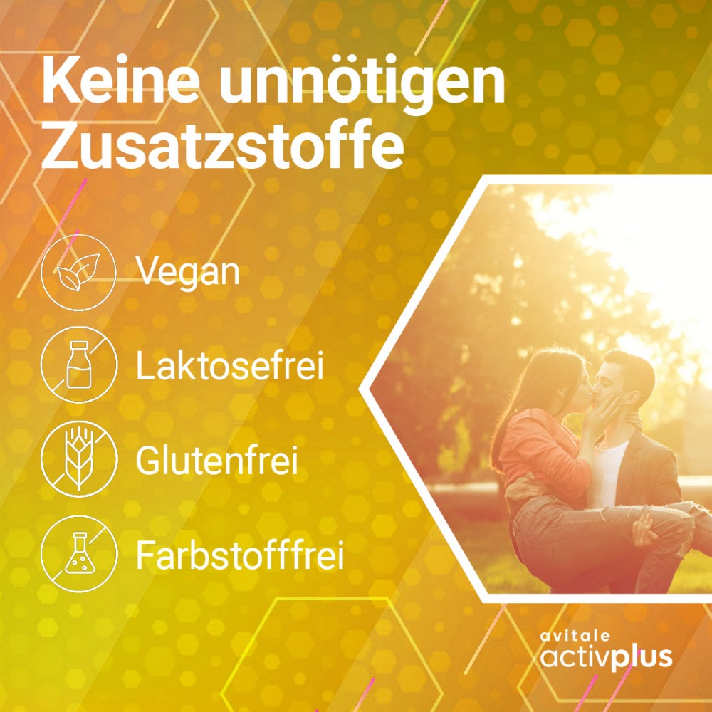 Avitale activplus Vitamin D3 20.000 I.E. Depot Tabletten sind lactosefrei, glutenfrei, ohne Farbstoffe und vegan
