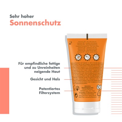 Das Avène Cleanance Sonnenfluid SPF 50+ schützt die empfindliche fettige, zu Unreinheiten neigende Haut vor UVB- und UVA-Strahlen und vor HEV Blue Light. Dank des innovativen HEV Blue Light Filters beugt es Hautalterung und Hyperpigmentierung vor.Das Avène Cleanance Sonnenfluid SPF 50+ bietet eine ultra-leichte Textur und normalisiert die Talgproduktion.