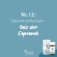 **Das Schüßler-Salz Nr. 12 Calcium sulfuricum von Pflüger ist das Salz der Dynamik.**Dr. Schüßler entfernte 1887 Calcium sulfuricum aus seiner Therapie, weil damalige Forschungen zu belegen schienen, dass dieses Funktionsmittel nicht in der konstanten Zusammensetzung des Körpers vorfindbar ist. Heute ist jedoch nachgewiesen, dass Calcium sulfuricum sehr wohl im Organismus vorhanden ist und bedeutsame Funktionen ausübt.