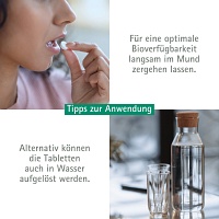 Alternativ können die Tabletten auch in einem Glas Wasser aufgelöst und in kleinen Schlucken getrunken werden; dabei jeden Schluck einige Minuten im Mund behalten. Schüßler-Salze nicht unmittelbar nach dem Essen einnehmen. Zur Verwendung einer Individualdosierung halten Sie bitte Rücksprache mit Ihrem Arzt, Apotheker oder Therapeuten.