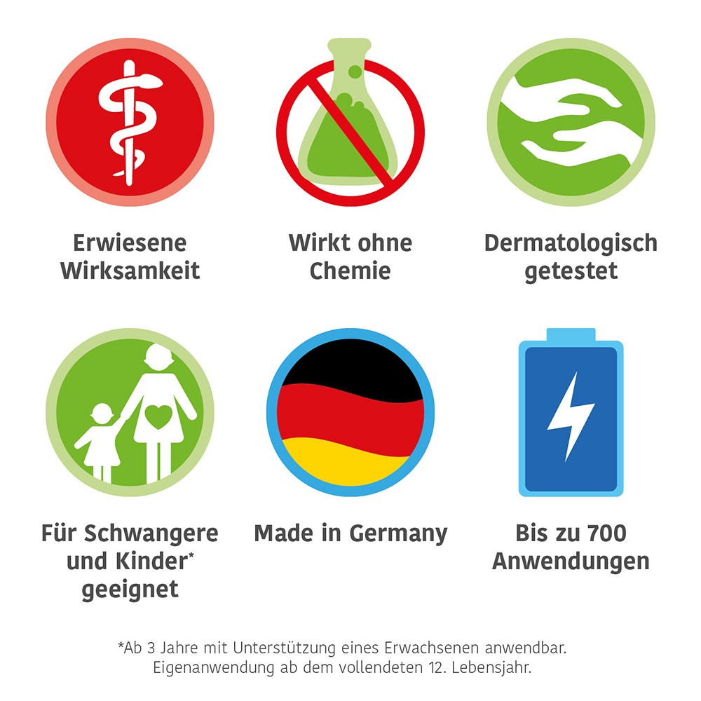 Die kurze Anwendungsdauer und die eingebauten 3-stufigen Sicherheitsfeatures machen eine Schädigung der Haut so gut wie unmöglich, und eine oder zwei Behandlungen reichen in der Regel aus, um die Symptome nachhaltig zu lindern.