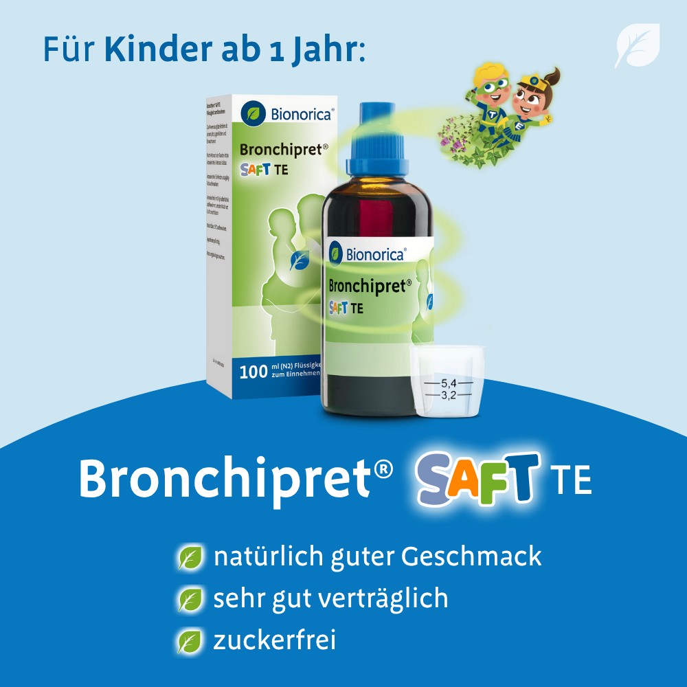 Zur Besserung der Beschwerden bei akuter Bronchitis mit Husten und Erkältungskrankheiten mit zähflüssigem Schleim. Das Arzneimittel wird angewendet bei Kindern ab einem Jahr, Jugendlichen und Erwachsenen. Enthält 300 mg Alkohol (Ethanol) pro 5,4 ml entsprechend 56 mg/ml. Enthält Maltitol-Lösung.