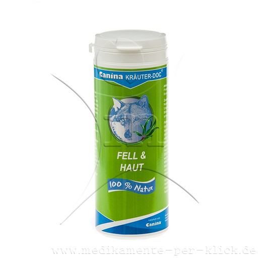 Canina KRÄUTER-DOC® FELL &. HAUT ist eine fein vermahlene und daher optimal verwertbare Mischung ausgesuchter Kräuter, die zur Unterstützung von Fell und Haut zugefüttert wird. Die Kräuter liefern wichtige Phytonährstoffe, die in der täglichen Ernährung fehlen können. Sie führen dem Körper und damit auch Haut und Haarkleid Vitamine, Mineralstoffe, Aminosäuren und sekundäre Pflanzenstoffe zu.Durch die speziell aufeinander abgestimmten Kräuter wird die Barrierefunktion der Haut gestärkt, empfindliche Haut und anspruchsvolles Haarkleid werden mit wichtigen Vitalstoffen versorgt. Das Wohlbefinden Ihres Hundes wird gefördert. Canina KRÄUTER-DOC® FELL &. HAUT enthält keine chemischen Zusätze - 100 % Natur!