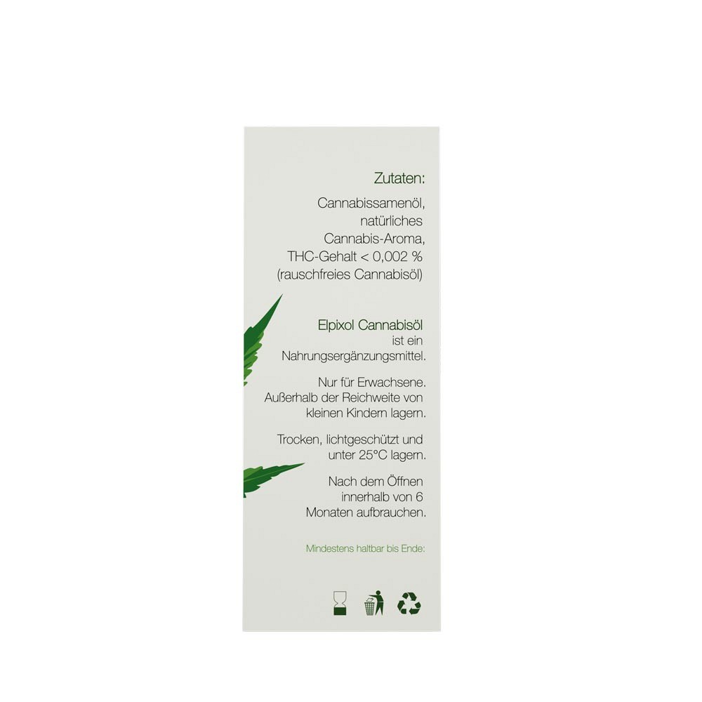 - Elpixol Cannabisöl darf nicht geraucht, vaporisiert, in der E-Zigarette verdampft oder gedabbt werden.