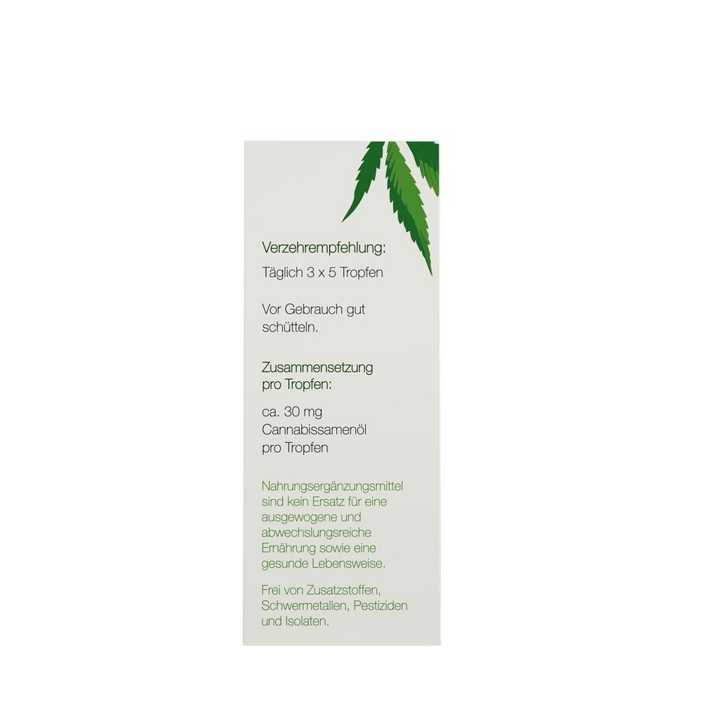 Nehmen Sie täglich bis zu 3 x 5 Tropfen ein, was 450 mg Cannabissamenöl entspricht. Schütteln Sie die Flasche vor Gebrauch gut.Hinweise: