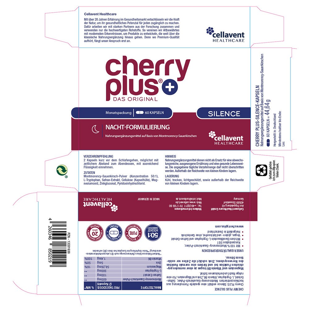 Cherry PLUS Silence vereint die kraftvollen Eigenschaften der Montmorency-Sauerkirsche mit Safran-Extrakt und natürlichem L-Tryptophan zu einem einzigartigen Schlafkomplex. 100 % vegan, frei von künstlichen Zusätzen und unter pharmazeutischen Bedingungen in Deutschland hergestellt – für erholsame Nächte und einen vitalen Start in den Tag.