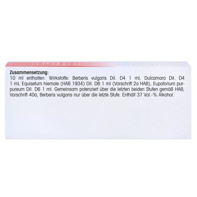 - Berberis vulgaris D4 (Sauerdorn): bei stechenden, schneidenden oder ziehenden Schmerzen in den Harnleitern sowie Urin mit trüben, flockigen, schleimigen oder mehligen Ablagerungen.
