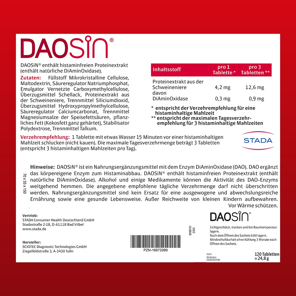 DAOSiN Tabletten zur Ergänzung des körpereigenen DAO-Enzyms zum Histaminabbau aus der Nahrung