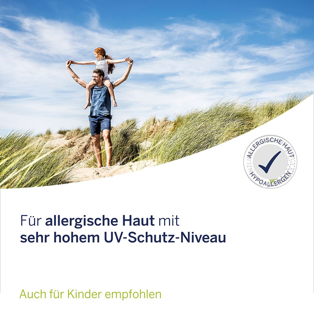 Die leichte, ölfreie Gelcreme wird speziell für allergische Haut, bei Neigung zu (Sonnen-)Allergien und Mallorca-Akne empfohlen. Der sehr hohe UV-Schutz wirkt lichtbedingter, vorzeitiger Hautalterung entgegen. Die Textur zieht sofort ein und ist auch für Kinderhaut empfohlen.