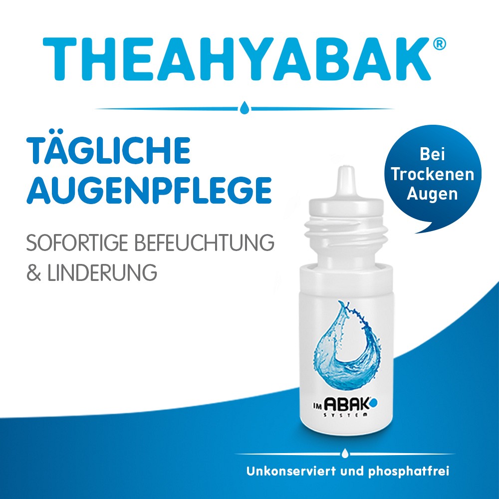 Mit THEAHYABAK hat Théa Pharma den Klassiker mit Hyaluronsäure, der den natürlichen Tränenfilm unterstützt und die Augen zuverlässig mit Feuchtigkeit versorgt.