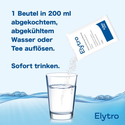 Der Inhalt eines Beutels wird in 200 ml abgekochtem, abgekühltem Wasser oder Tee aufgelöst und kann warm oder kalt getrunken werden. Durch die praktische Darreichungsform ist Elytro also auch auf Reisen ideal geeignet.