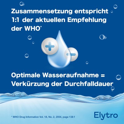 Bei Elytro handelt es sich um eine Glucose-Elektrolyt-Mischung in Pulverform, die gezielt entwickelt wurde, um auf den Flüssigkeitsverlust bei Durchfall (Diarrhö) zu reagieren und die verlorenen Flüssigkeiten und Elektrolyte schnellstmöglich auszugleichen.Für Kinder ab 3 Jahren, Jugendliche und Erwachsene.