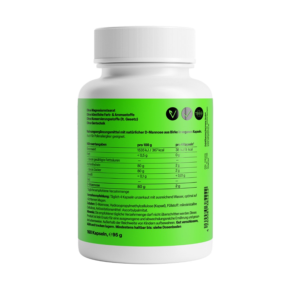 - Hochwertige D-Mannose aus Birkenrinde in veganen Kapseln