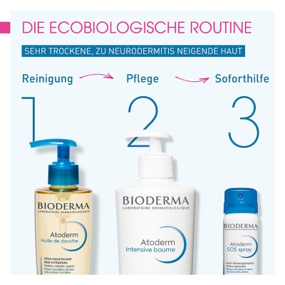 Bei akutem Juckreiz, als Soforthilfe kann der Anti-Juckreiz Spray BIODERMA Atoderm SOS Spray zusätzlich in Kombination verwendet werden.