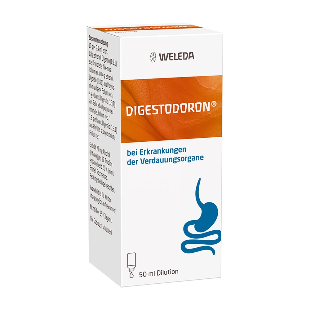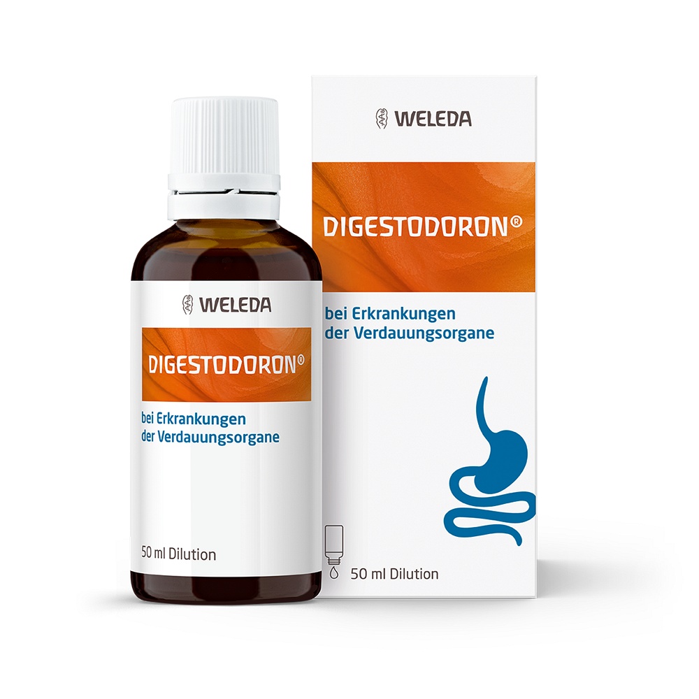 Digestodoron® Dilution (Tropfen) regt die rhythmischen Abläufe im Verdauungstrakt nachhaltig an und stellt bei längerfristiger Einnahme das rhythmische Gleichgewicht wieder her. Sie reguliert so die Verdauungstätigkeit und ist dafür geeignet, die allgemeine Neigung zu Magen-Darm-Problemen zu verringern. Digestodoron gibt es auch als Tabletten.
