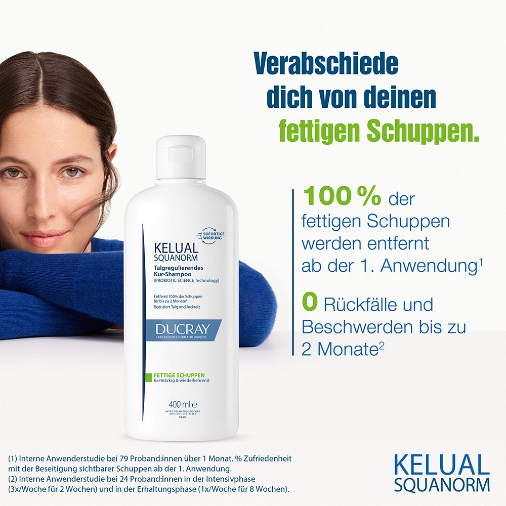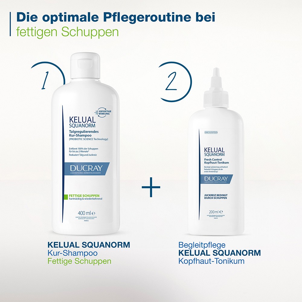 Das KELUAL SQUANORM Kur-Shampoo Fettige Schuppen ist der Problemlöser vom Kopfhautexperten für fettige Schuppen.