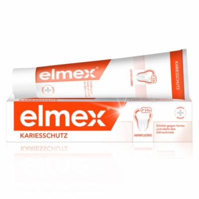 Sagen Sie Karies den Kampf an. Mit der elmex KARIESSCHUTZ Zahnpasta mit hochwirksamer Aminfluorid-Formel. Die klinisch bestätigte Formel bildet ein 2-fach aktives Kalzium-Fluorid-Schutzschild um Ihre Zähne, remineralisiert angegriffene Stellen im Zahnschmelz und schützt Ihre Zähne so effektiv vor Karies. Und das auch an Oberflächen, die die Zahnbürste nicht so gut erreicht.Putzen Sie Ihre Zähne morgens und abends mit der elmex KARIESSCHUTZ Zahnpasta und halten Sie ihren Mundraum gesund. Die Aminfluorid-Formel fördert die Wiedereinlagerung von Mineralien in den Zahn. Der Zahnschmelz wird gehärtet und effektiv vor Karies geschützt. Wussten Sie schon: Die elmex KARIESSCHUTZ Zahnpasta wird von Zahnärzten empfohlen.