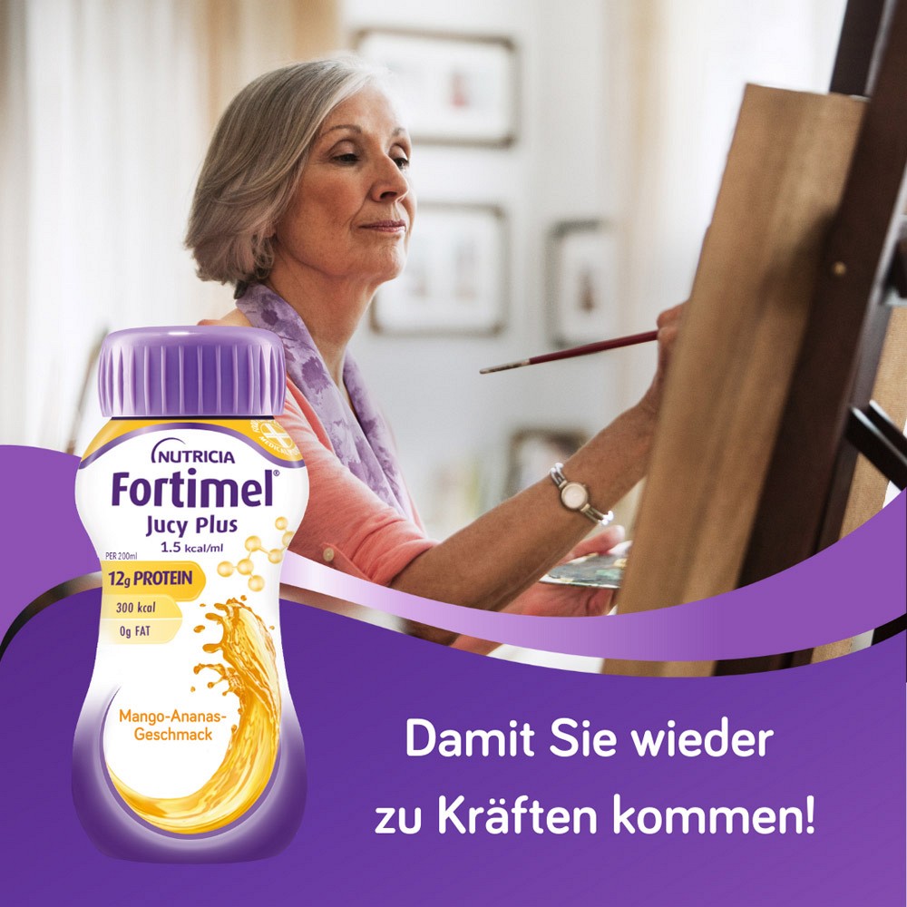 - Die fruchtig-klare Fortimel® Jucy Plus Trinknahrung ist direkt verzehrfertig und praktisch für unterwegs - schmeckt besonders gut gekühlt und gemischt mit Sprudelwasser als Schorle