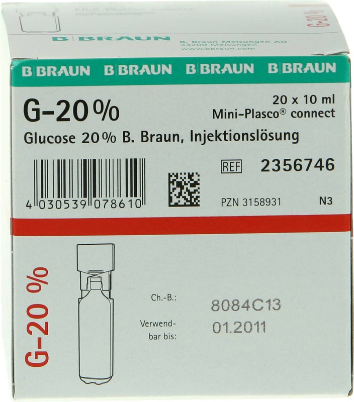 GLUCOSE 20% B.Braun Mini Plasco connect Inj.-Lsg. 20X10 ml 3