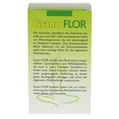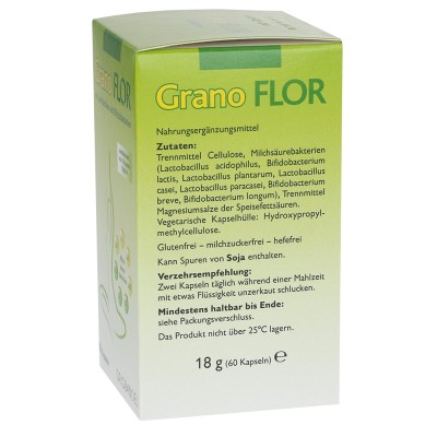 Grano Flor enthält 7 ausgewählte Kulturen von Milchsäurebakterien, die zum allgemeinen Wohlbefinden im Darm beitragen. Jede Kapsel enthält 10 Milliarden (10 x 109) Milchsäurebakterien.