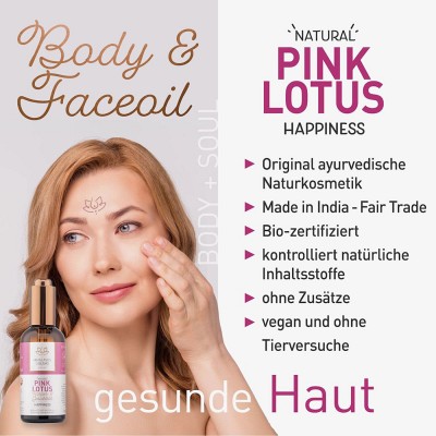 Dieses pflegende Öl mit Pink Lotus als Feuchtigkeitsspender hilft trockene Haut weich und geschmeidig zu machen.- Original ayurvedische Naturkosmetik