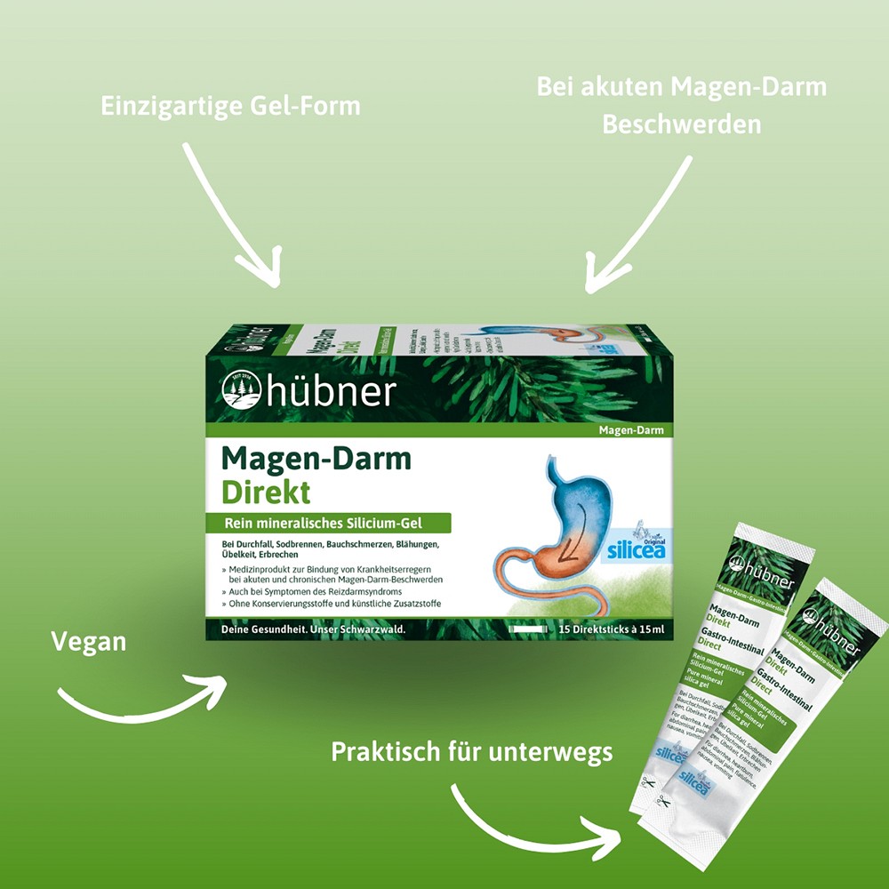 hübner Magen-Darm Direkt unterstützt Dich bei akuten und chronischen Magen-Darm-Beschwerden - auch bei Symptomen des Reizdarmsyndroms.