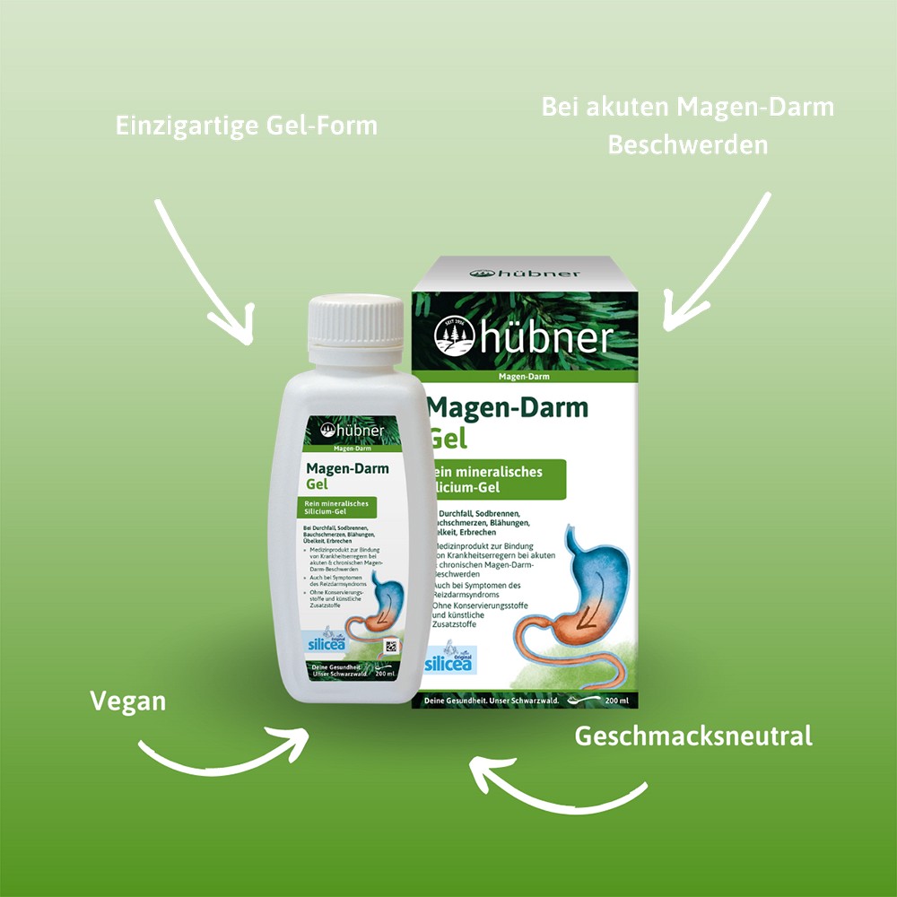 Wenn die Verdauung aus dem Gleichgewicht gerät, hilft hübner Magen-Darm Gel auf natürliche Weise. Es fördert die Regeneration und unterstützt die Darmgesundheit auf vielfältige Weise– ganz ohne chemische Zusätze mit rein mineralischem Silicium-Gel.