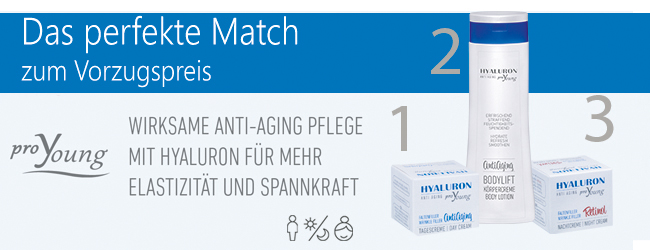 Pflegende Wirkstoffe können in den Nachtstunden von der Haut besonders gut aufgenommen werden. Die proYoung Anti-Aging Nachtcreme nutzt diesen Effekt und mindert Falten, regeneriert und strafft anspruchsvolle Haut aus einer Kombination sorgfältig aufeinander abgestimmter und natürlicher Inhaltsstoffe.Durch den Einsatz von Vitamin A (Retinol) werden Haut alterungsbedingte Schäden wie der Abbau von Kollagen, Entzündungen und Pigmentflecken gehemmt und die Ebenmäßigkeit des Teints wird aktiv verbessert.
