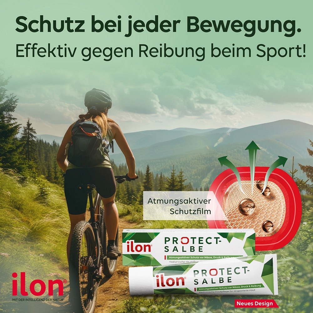 Das muss nicht sein. Die ilon Protect-Salbe hilft Wundscheuern, Druckbeschwerden und Wundreiben bei sportlichen Aktivitäten zu vermeiden. Die Sal- be kann zudem negative Folgeerscheinungen durch das Tragen von reibender Kleidung und Schuhen vorbeugen.