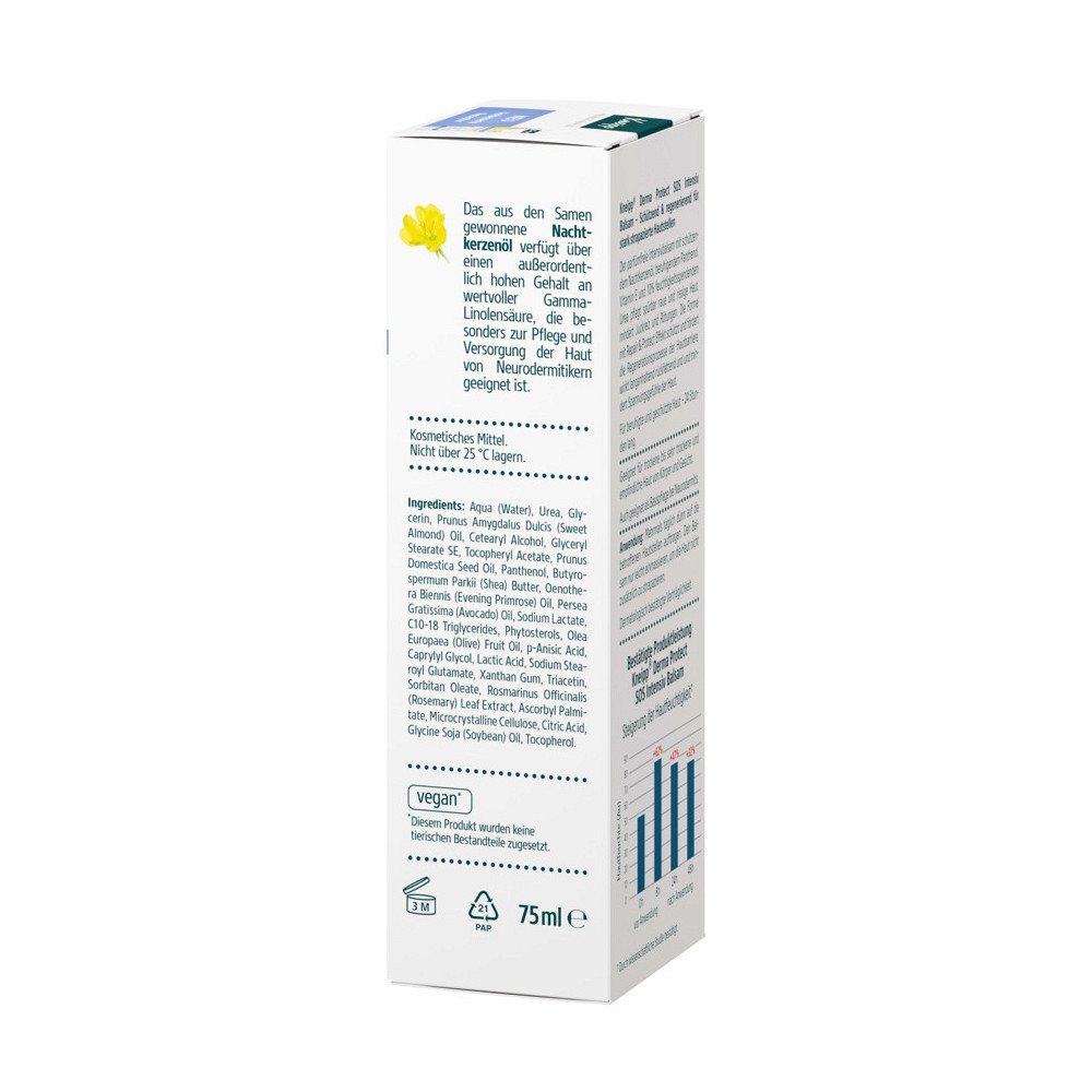 Der parfümfreie Intensivbalsam mit schützendem Nachtkerzenöl, beruhigendem Panthenol, Vitamin E und 10% feuchtigkeitsspendendem Urea pflegt spürbar raue und rissige Haut, mindert Juckreiz und Rötungen.Die Formel mit Repair & Protect Effekt schützt und fördert die Regenerationsprozesse der Hautbarriere, wirkt langanhaltend rückfettend und und mindert Spannungsgefühle der Haut. Für beruhigte und geschützte Haut - 24 Stunden lang.