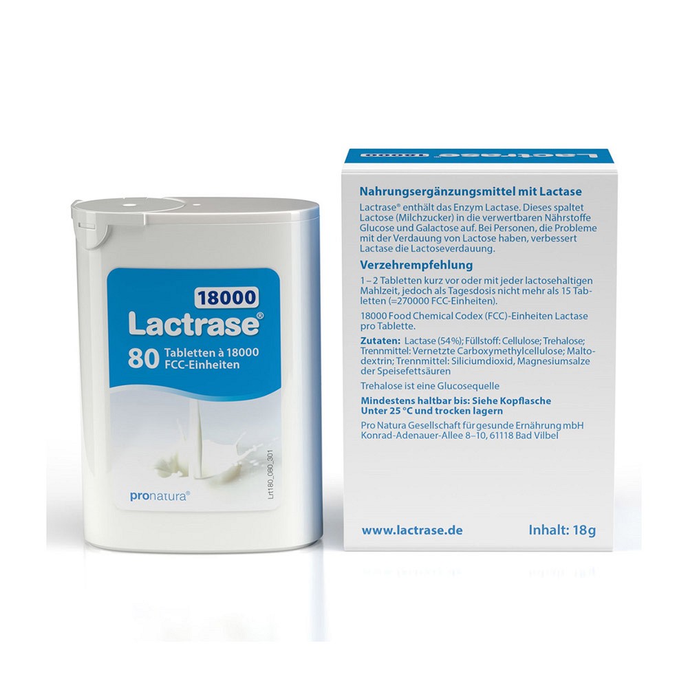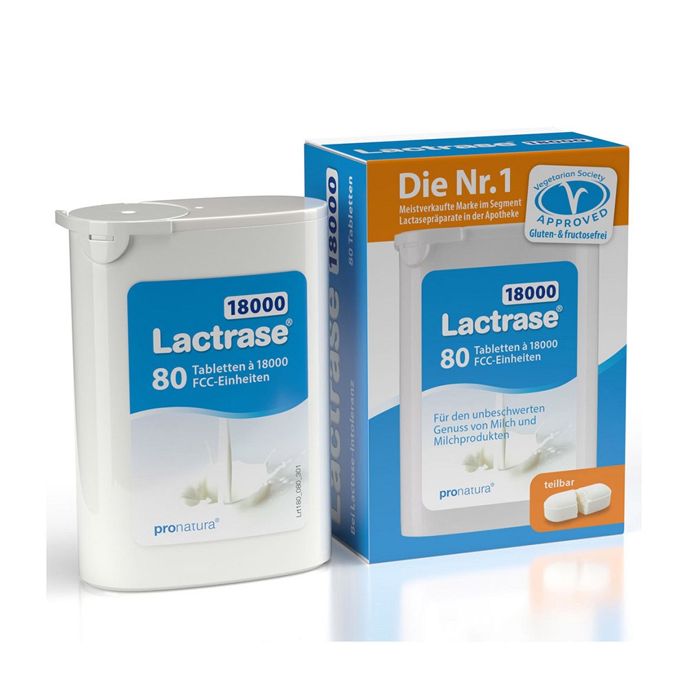 Lactrase 18000 unterstützt mit seiner millionenfach bewährten Sofortwirkung die Verdauung von Lactose (Milchzucker) und ermöglicht somit den Genuss von Milchprodukten. Das in den Tabletten enthaltene Enzym Lactase ersetzt die bei Lactoseunverträglichkeit fehlende körpereigene Lactase und spaltet die Lactose in ihre leicht verwertbaren Bestandteile Glucose und Galactose auf. So wird der Genuss von Eisbechern, Cremesuppen und Joghurts wieder möglich.