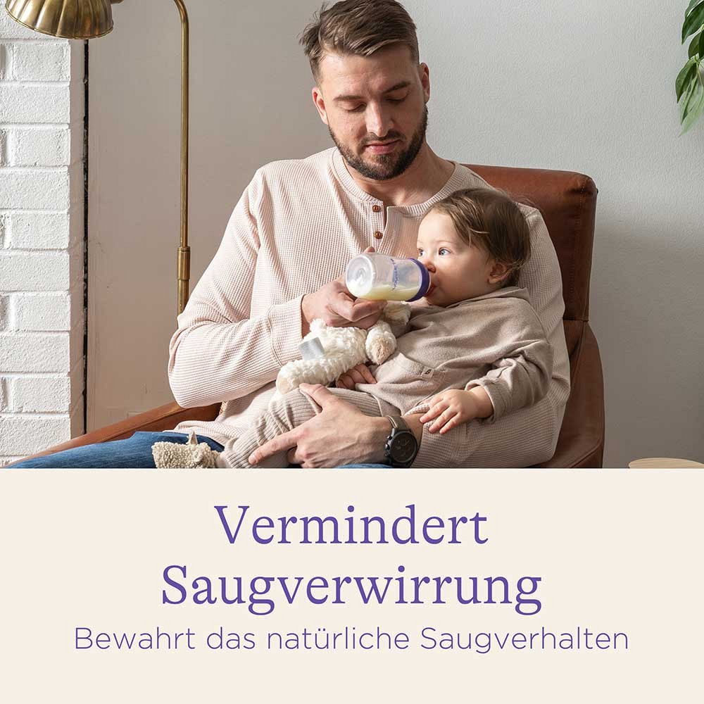 Der NaturalWave® Sauger von Lansinoh® wurde speziell für gestillte Babys entwickelt.Durch das extraweiche und flexible Silikon passt er sich dem Gaumen an und ermöglicht dem Baby, sein natürliches Saugverhalten zu bewahren. Dies macht einen einfachen Wechsel von der Brust zur Flasche und zurück zur Brust möglich.