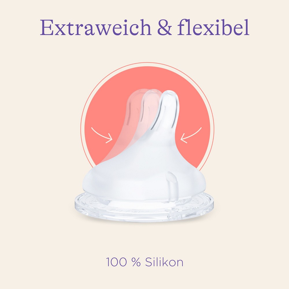 Ein integriertes Anti-Kolik-Ventil verringert das Schlucken von Luft – eine mögliche Ursache von Koliken.
