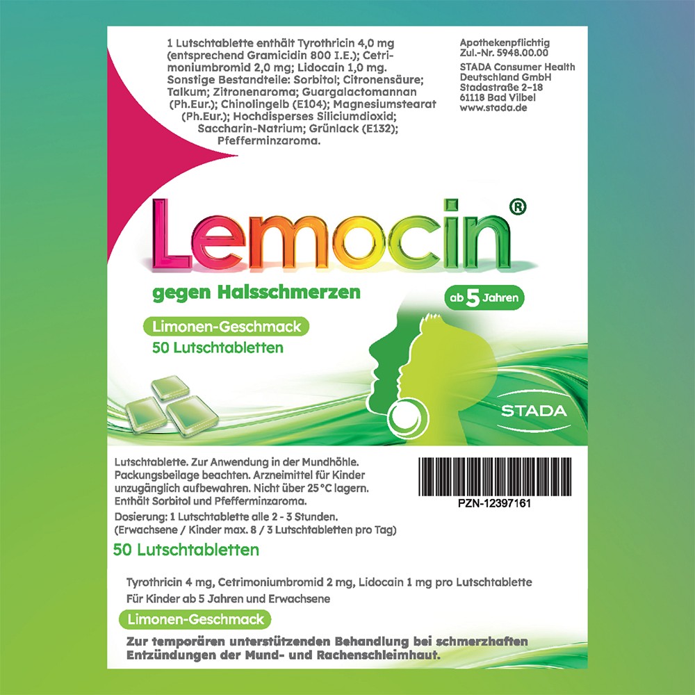 Es muss nicht einmal eine richtige Halsentzündung oder Reizhusten sein: Schon bei den ersten Anzeichen von Halsschmerzen, wenn es im Hals kratzt, die Stimme belegt ist und Schluckbeschwerden auftreten, wird der Alltag beschwerlich. Besonders für Familien und berufstätige Eltern, die keine Zeit haben um krank zu sein.Lemocin gegen Halsschmerzen hilft schon bei den ersten Anzeichen von Schluckbeschwerden und verschafft effektiv Linderung. Denn Lemocin Lutschtabletten wirken nicht nur schmerzlindernd, sondern auch antibakteriell und desinfizierend – und schmecken lecker nach Limone.