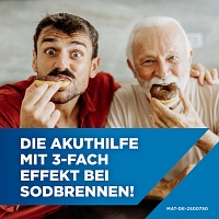 Anw.-geb.: Zur symptomat. Behandl. von Erkrankungen, bei denen die Magensäure gebunden werden soll: Sodbrennen und säurebedingte Magenbeschwerden, Magen- oder Zwölffingerdarmgeschwüre (Ulcus ventriculi und Ulcus duodeni).