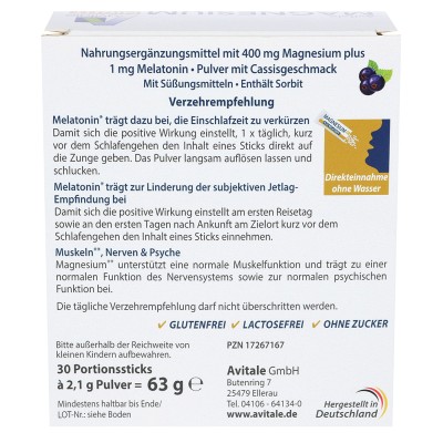 Mit 400 mg Magnesium für entspannte Muskeln** im Schlaf und 1mg Melatonin*Portionssticks zur Direkteinnahme ohne Wasser mit Cassis-Geschmack