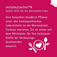 Mit metaheptachol N unterstützen Sie Ihr leistungsfähigstes Entgiftungsorgan. Tag für Tag arbeitet die Leber auf Hochtouren. Sie ist für die Verarbeitung der Nährstoffe aus dem Darm sowie für viele Auf- und Abbauprozesse zuständig. Das Kombinationsmittel mit sechs homöopathischen Arzneistoffen unterstützt die Leber bei ihrer Arbeit auf natürliche Weise.Anwendung und Dosierung
