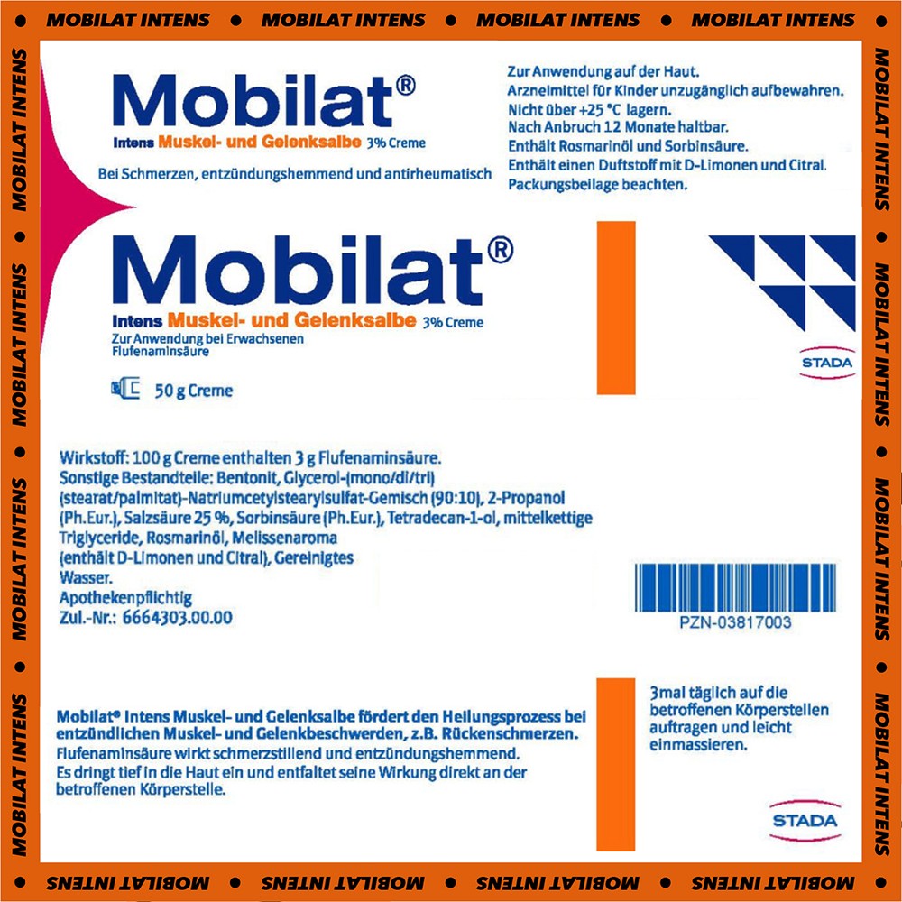 - Mobilat Intens Muskel- und Gelenksalbe lindert den Schmerz und bekämpft gleichzeitig die Entzündung