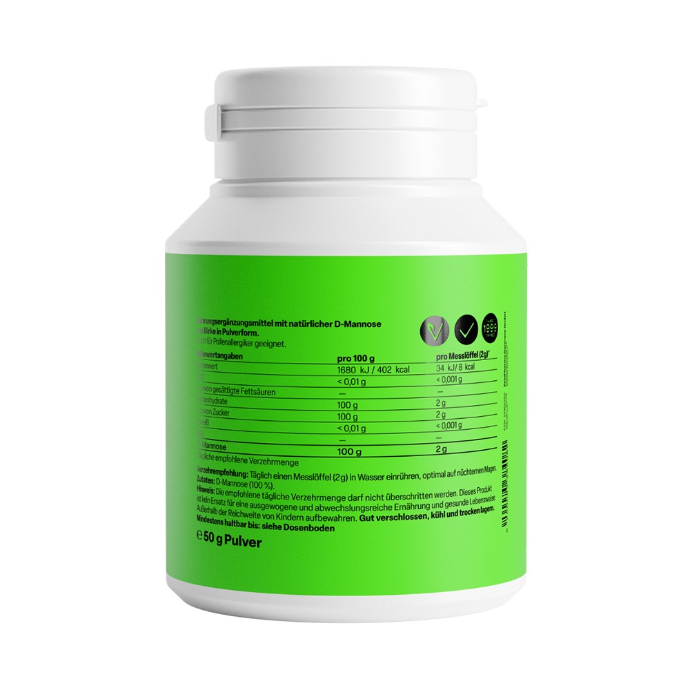 - Schonend gewonnenes, hochreines D-Mannose Pulver aus Birkenrinde, nicht Mais