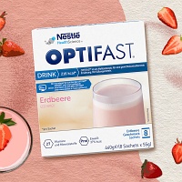 ­Ersetzen Sie täglich eine oder­ zwei Hauptmahlzeit/en durch je ein Sachet OPTIFAST Drink (1 Sachet = 1 Hauptmahlzeit). Die OPTIFAST Produkte erfüllen nur im Rahmen einer kalorienarmen Ernährung den angestrebten Zweck, andere Lebensmittel müssen Teil dieser Ernährung sein.