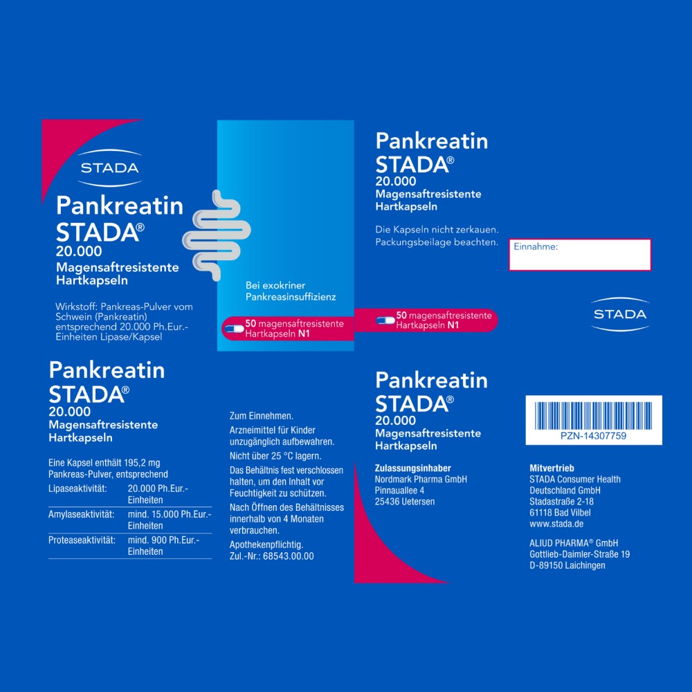 Pankreatin Pankreatin STADA® 20.000 zur Behandlung von Verdauungsstörungen durch eine Minderfunktion der Bauchspeicheldrüse