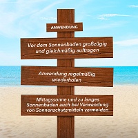 Vor dem Sonnen großzügig und gleichmäßig auftragen. Eine zu geringe Menge mindert den Schutz erheblich. Anwendung mehrfach wiederholen, besonders nach Schwitzen, Schwimmen oder Abtrocknen. Mittagssonne meiden und auch nach dem Eincremen nicht zu lange in der Sonne bleiben.Babys und Kinder sollten nie direktem Sonnenlicht ausgesetzt sein. Spray nicht direkt aufs Gesicht sprühen. Auf die Hand geben und dann im Gesicht verteilen. Dabei Augenkontakt vermeiden.