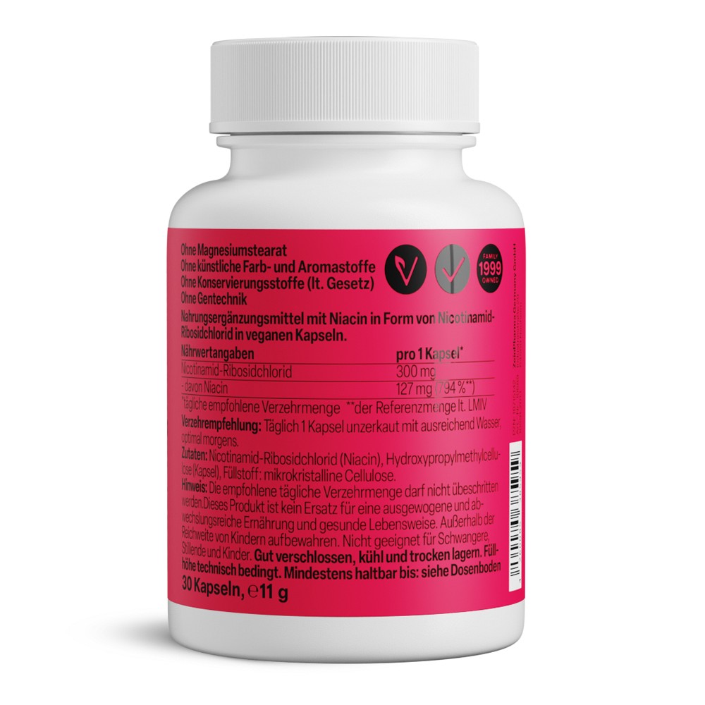 Nahrungsergänzungsmittel mit Niacin in Form von Nicotinamid-Ribosidchlorid.