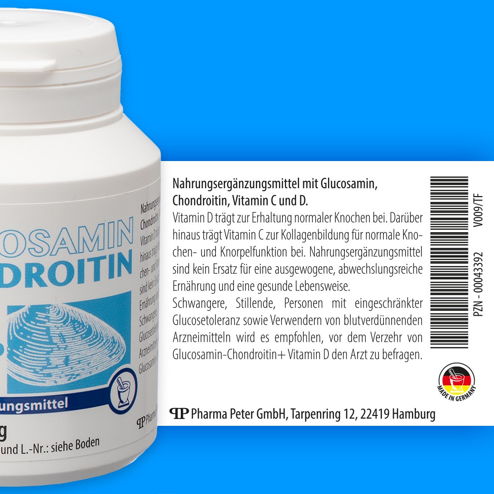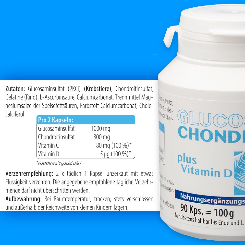 - Hochdosiertes Glucosamin und Chondroitin ergänzt mit Vitaminen