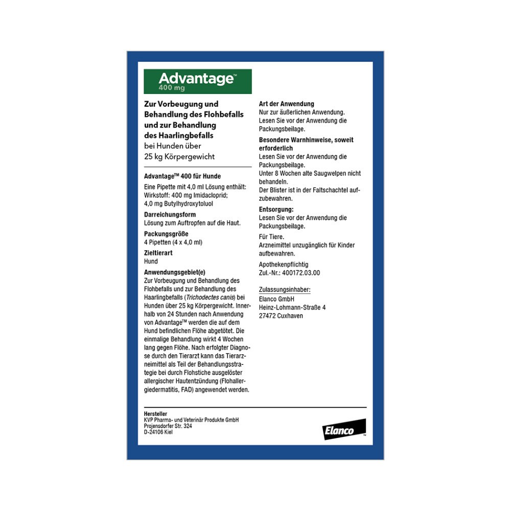 - Advantage® Spot-On 40 für große Hunde von 10 bis 25 kg Körpergewicht