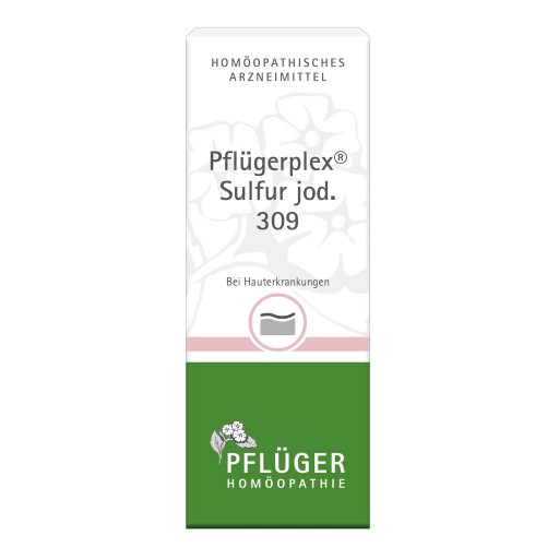 Pflügerplex® Sulfur jod. 309 ist ein homöopathisches Arzneimittel bei Hauterkrankungen. Das Anwendungsgebiet leitet sich von den homöopathischen Arzneimittelbildern ab. Dazu gehören: Mit Juckreiz einhergehende Hauterkrankungen.