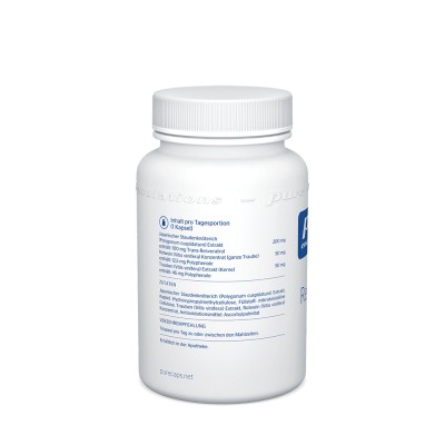 Pure Encapsulations® Resveratrol extra enthält ausschließlich stabiles und effektives trans-Resveratrol, das aus dem japanischen Staudenknöterich gewonnen wird. In niedriger Konzentration ist der sekundäre Pflanzenstoff aber auch in Weintraubenschalen vorhanden, wodurch Resveratrol primär Bekanntheit erlangte (Rotwein).