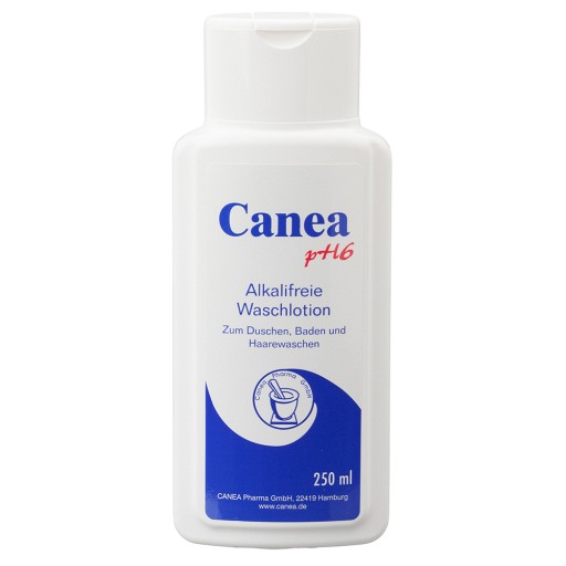 Alkalifreie Waschlotion zum Duschen, Baden und HaarewaschenCanea pH6 ist eine medizinische Waschkosmetik. Sie ist besonders für empfindliche, trockene und leicht gereizte Haut geeignet, da sie seifenfrei (alkalifrei) ist. Diese Waschlotion bietet die moderne Alternative zur Reinigung mit herkömmlicher Seife. Mit Canea pH6 alkalifreie Waschlotion wird die Haut auf sehr schonende Weise gereinigt und ihr Säureschutzmantel stabilisiert.