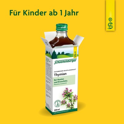 • Effektive Linderung bei Husten und Bronchitis: Thymian Saft von Schoenenberger hilft, zähen Hustenschleim zu verflüssigen und erleichtert so das Abhusten.